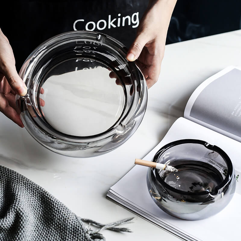 - Stylish round glass ashtrays for home, restaurants, and bars