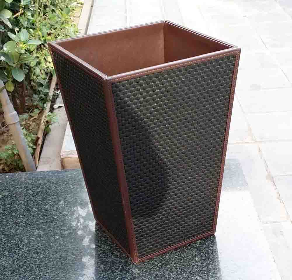 | Product Name: | Elegant Leather Trash Bin for Hotel, Office, and Home Use | Lining material: | Imitation leather | General Use: | Place metal trash can core,or place trash directly |