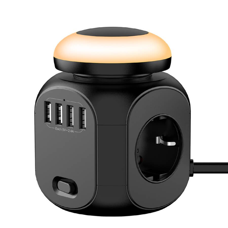 Versatile EU Extension Socket with 4 USB Charging Ports – Your Portable Power Cube Companion with a Night Light