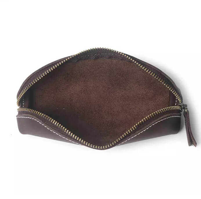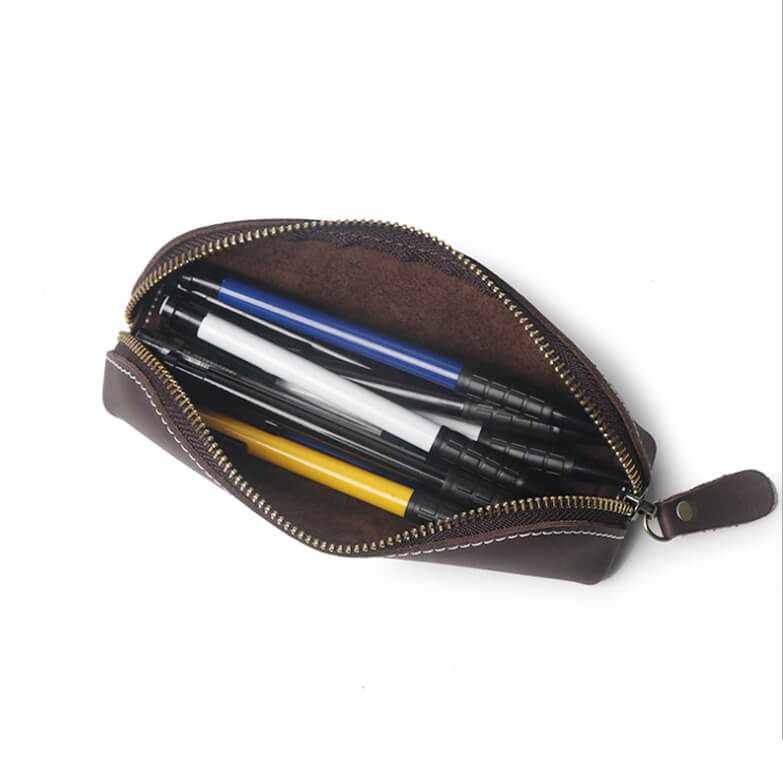 - Stylish genuine leather pencil pouch with a classic design