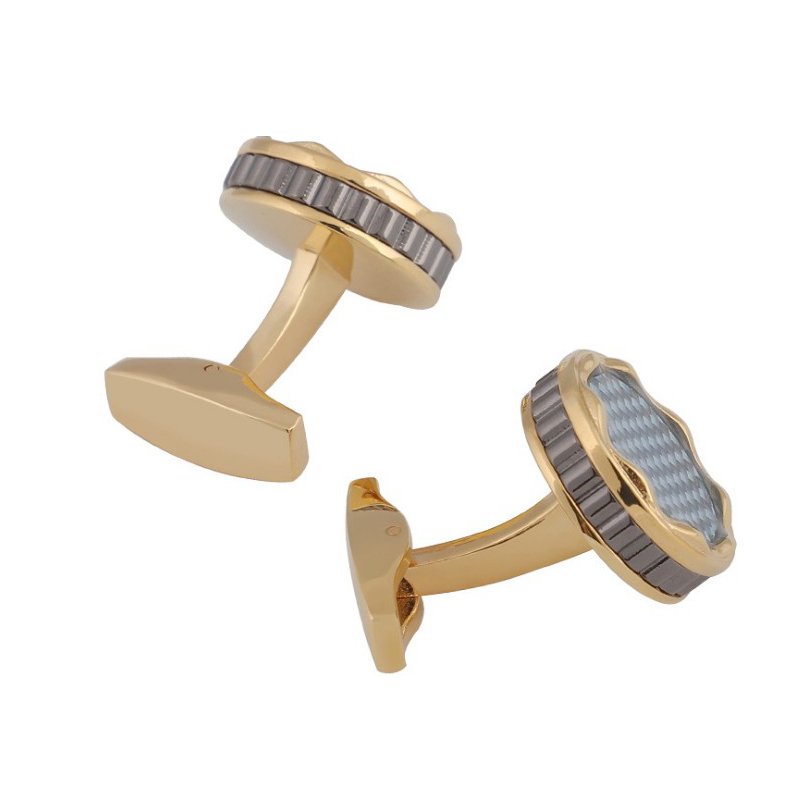 Immerse yourself in the artistry of our Cufflinks Men’s boutique round, adorned with carbon fiber and Epoxy plating in a luxurious gold finish. Each cufflink showcases impeccable craftsmanship, boasting an alluring high specular reflection effect. Exuding a simple yet powerful charm, this European and American-inspired masterpiece exquisitely complements any ensemble.