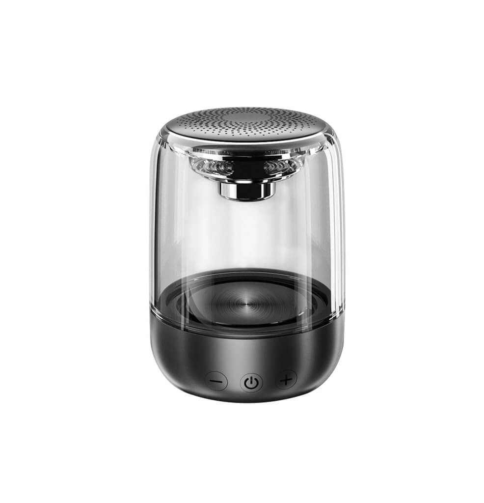 Stylish and Portable: The elegant transparent housing design adds a touch of sophistication to any setting, making it blend seamlessly with your home decor. Its pocket-size construction allows you to take the speaker wherever your adventures lead.